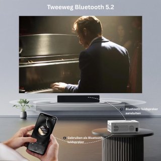 De Mini Beamer werkt zonder externe app en heeft geen ingebouwde accu — ideaal voor wie een compacte en betrouwbare projector zoekt die op stroom kan worden aangesloten. De projector is eenvoudig in te stellen en dankzij lens shift (horizontaal en verticaal) kun je je beeldpositie extra nauwkeurig afstemmen. Houd er rekening mee dat er geen keystone-correctie aanwezig is.