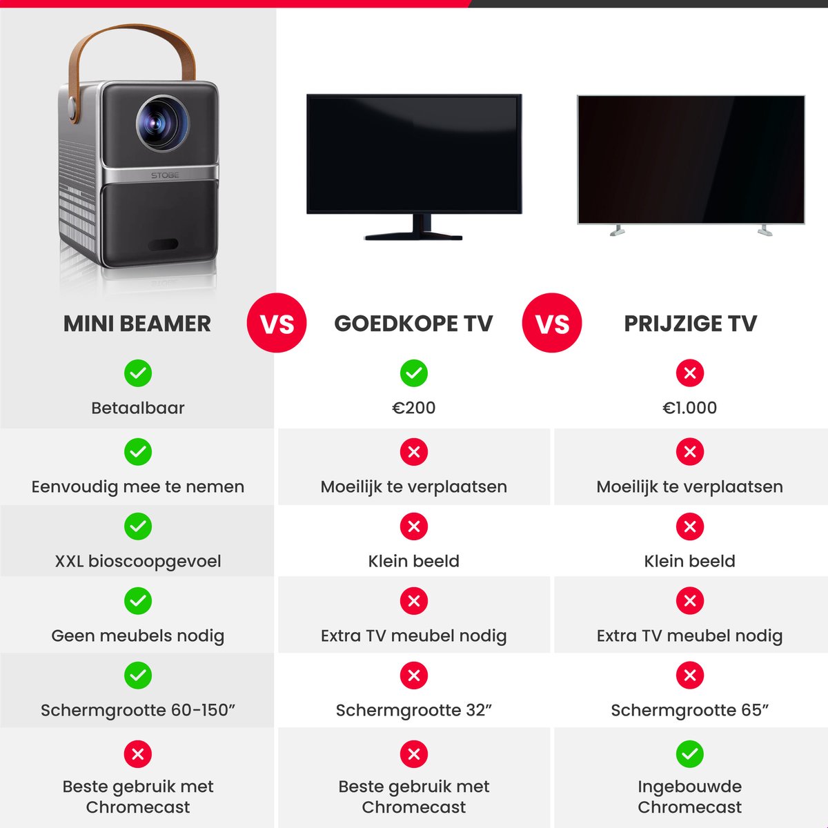 - Beste in zijn prijsklasse: Onze mini projectors worden in Nederland ontwikkeld en onderscheiden zich door kwaliteit en prestaties.